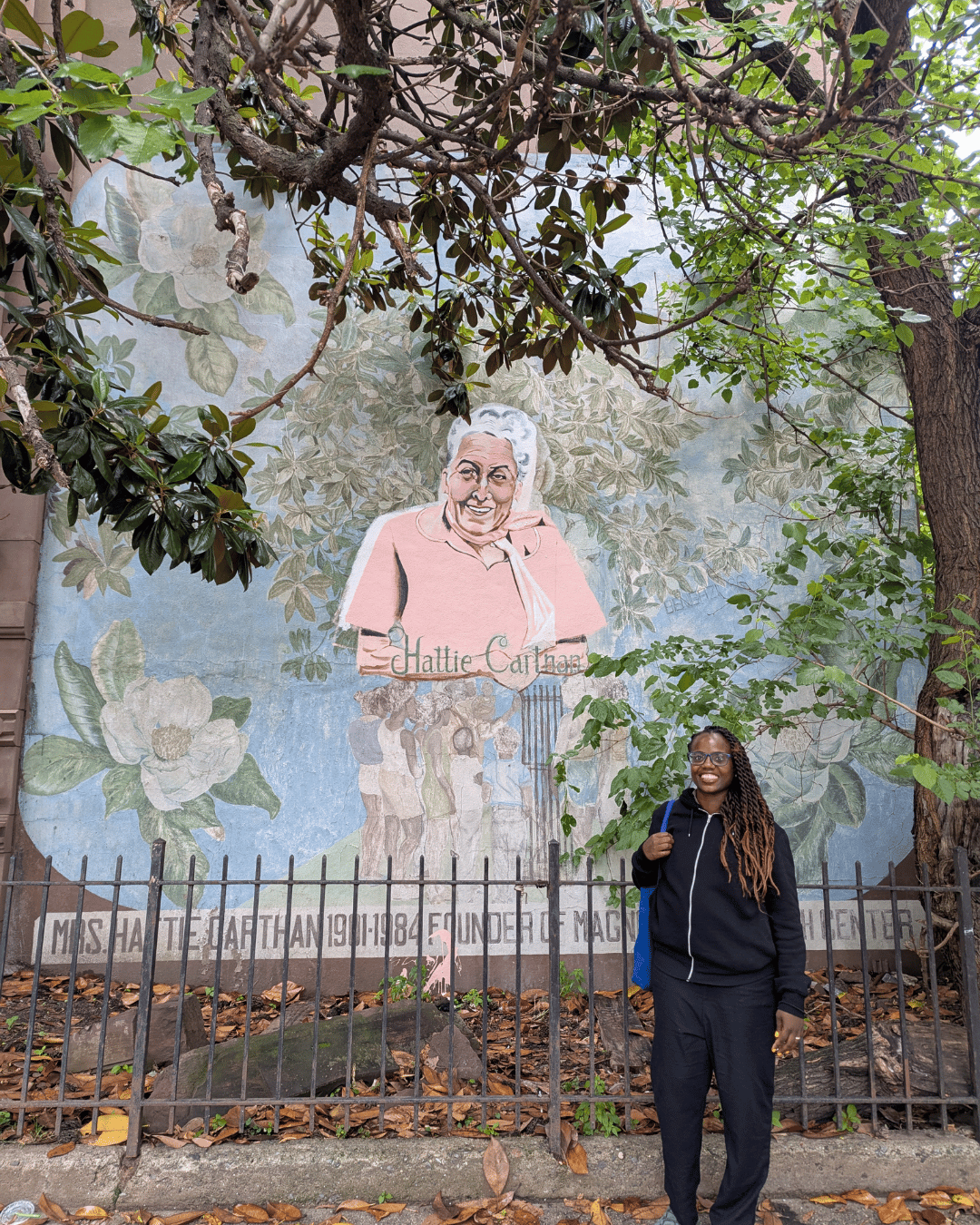 Zing standing in front of the Magnolia Tree Earth Center [Pixel Pro, 06.09.25]